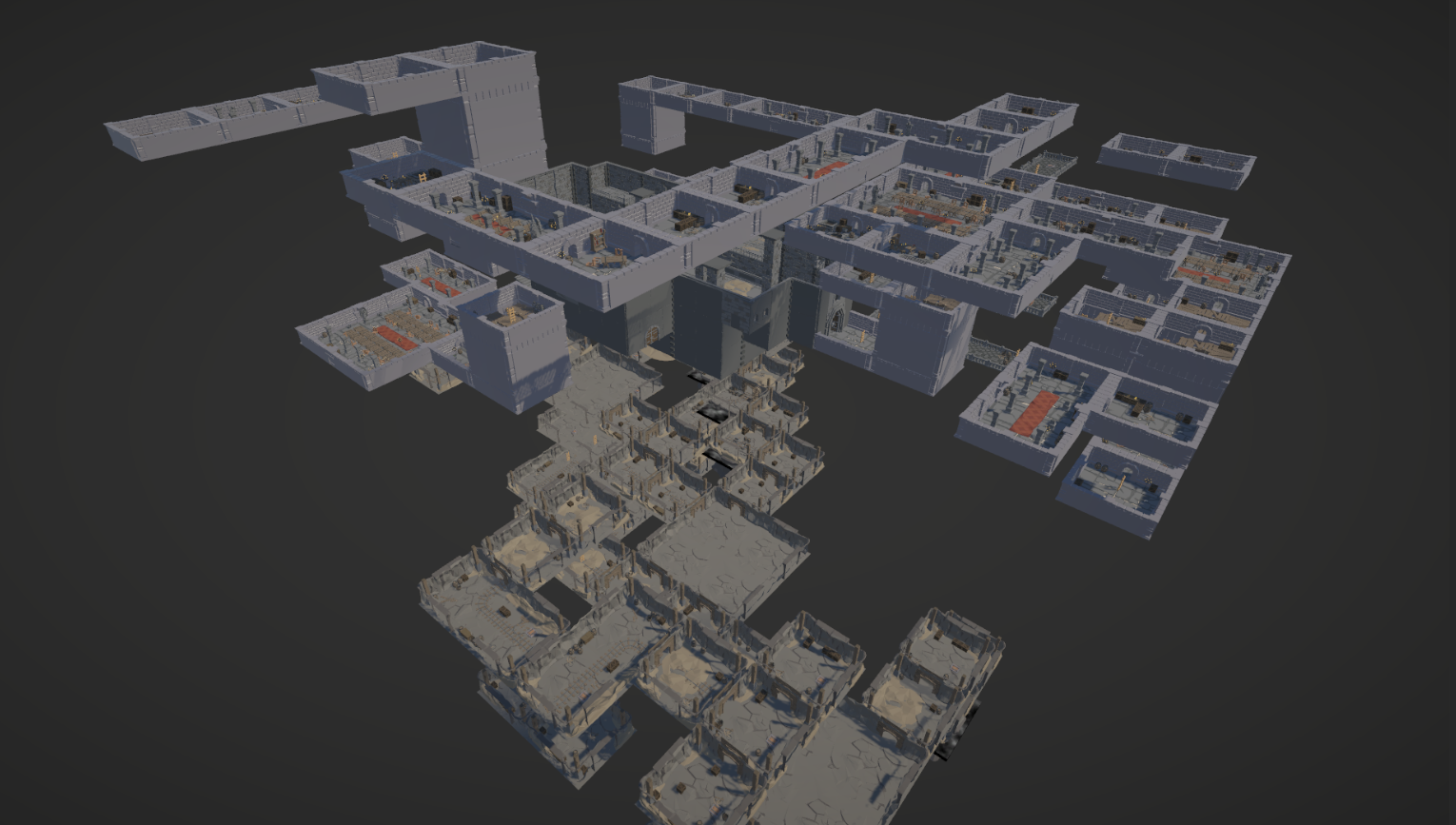 The Labyrinth Algorithm is a custom algorithm that combines many sophisticated procedural generation techniques and blueprints to create vast, contiguous, and interconnected dungeons. The algorithm utilizes time and memory efficiency, making dungeons with thousands of rooms generate in a matter of seconds. The algorithm is also built to be scalable and robust for future additions and gameplay mechanics.